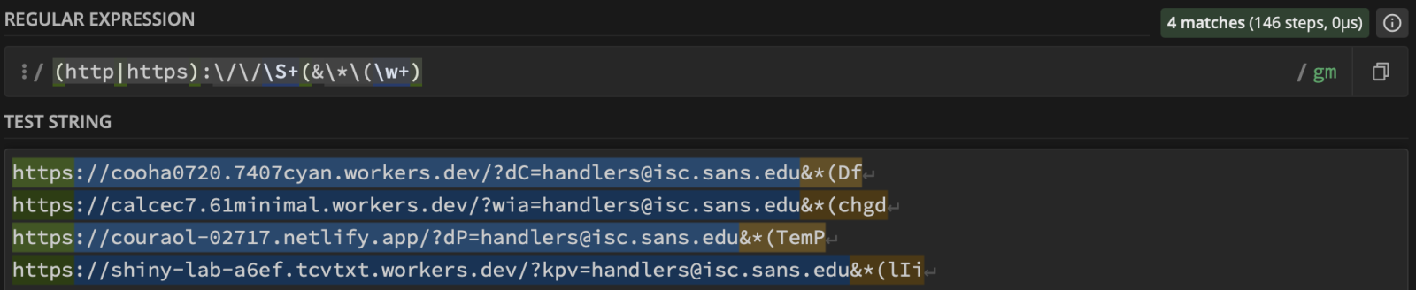 hxxps://cooha0720[.]7407cyan[.]workers[.]dev/?dC=handlers@isc[.]sans[.]edu&*(Df hxxps://calcec7[.]61minimal[.]workers[.]dev/?wia=handlers@isc[.]sans[.]edu&*(chgd hxxps://couraol-02717[.]netlify[.]app/?dP=handlers@isc[.]sans[.]edu&*(TemP hxxps://shiny-lab-a6ef[.]tcvtxt[.]workers.dev/?kpv=handlers@isc[.]sans[.]edu&*(lIi